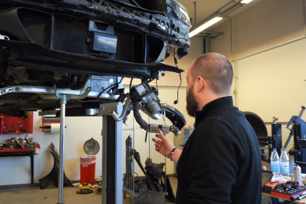 Vi er som regel tre personer som jobber på en bil. Som bilskadereparatør gjør jeg alt av karosseriarbeid, sparkling og sveising. Så er det en bilklargjører og en billakkerer. Noe vi ofte må gjøre på biler nå, som det var mindre av før, er delutskifting. Før var det mer konstruksjonsskader, men nå velger man i større grad å vrake bilene hvis de er veldig skadet. Da er det mer utskifting og retting av biler.